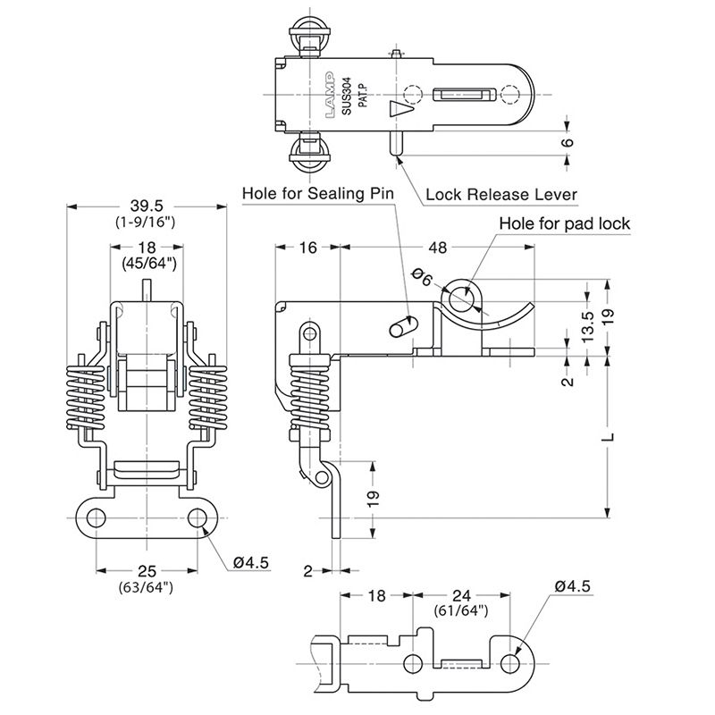 Pull lever and lift latch to open.