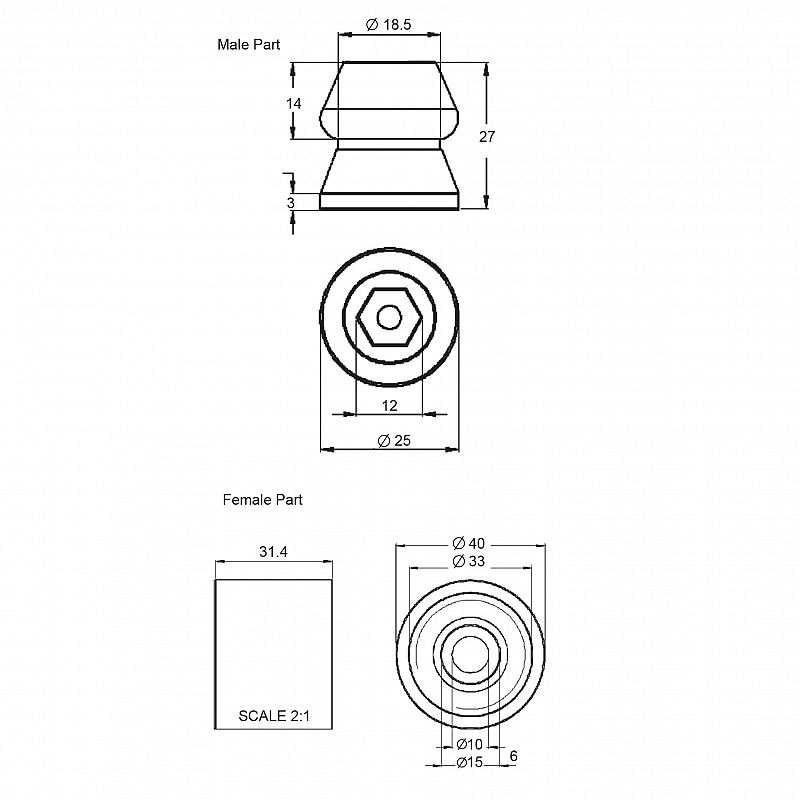 A 6mm clearance hole is provided for fixing.