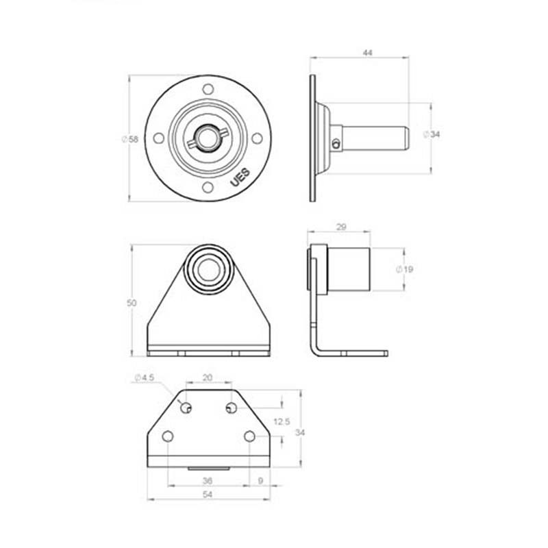 Slotted round head male and female assembly, 12mm thread.