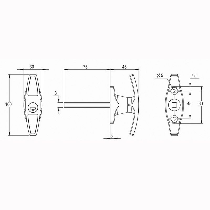 THF100-1A – T Handle Front Fixing Keyed KA92268 Anti C/Wise.