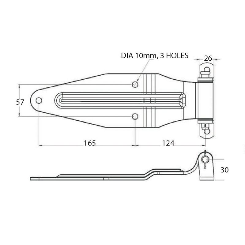 Heavy duty rear door hinge, weld-on butt.