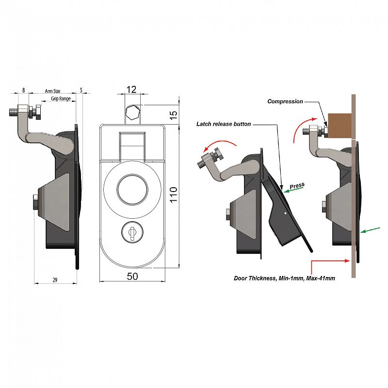 Grip range 45 – 57mm. Locking,
