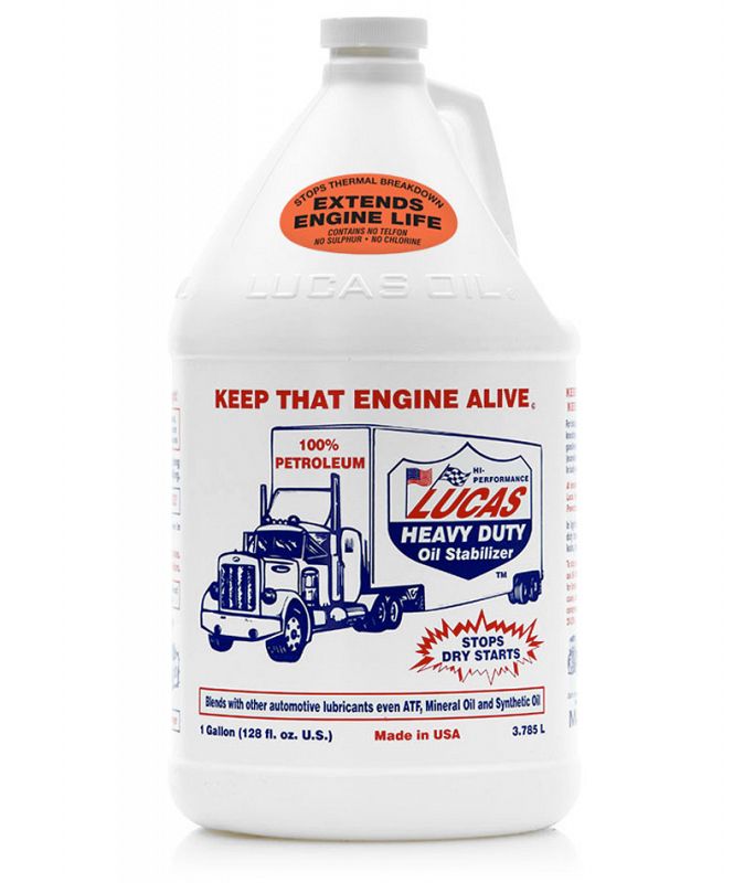 Lucas Oil Stabilizer is a 100% petroleum product formulated to eliminate dry starts and reduce friction, heat and wear in any type of engine. It allows motor oils a higher degree of lubricity which reduces oil consumption and operating temperatures. Use Lucas Oil Stabilizer in gear oil to stop leaks, reduce operating temperatures and increase the life of the gear oil. Since it is pure petroleum, it can safely blend with all other automotive lubricants, even synthetics, ATF and mineral oil. It keeps old engines alive and new engines new.