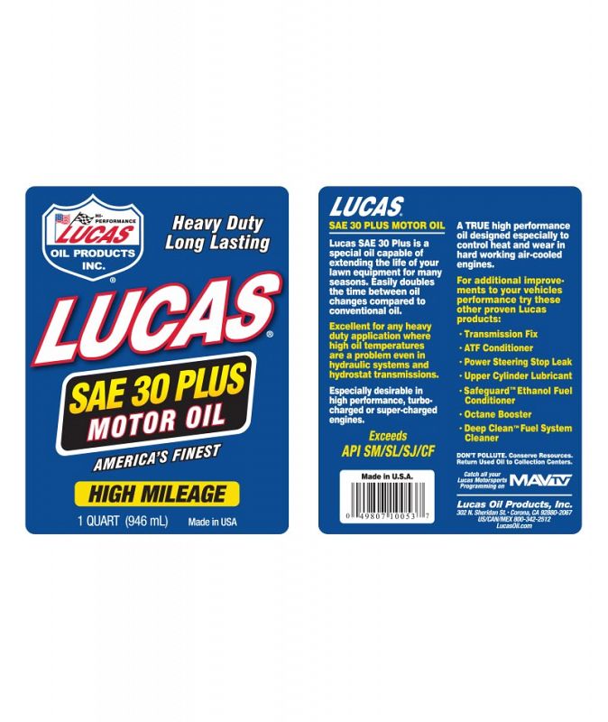 Lucas 30 WT Plus is a blend of high quality base stocks and an exclusive additive package that sets it far apart from other 30 WT oils.